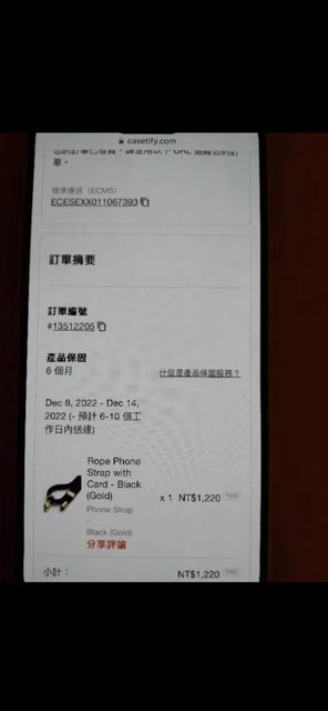 標題[販售] 全國 Casetify 手機掛繩背帶Black(Gold)