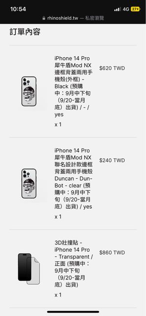 標題[販售]全國 iPhone 14 Pro犀牛盾+貼$850