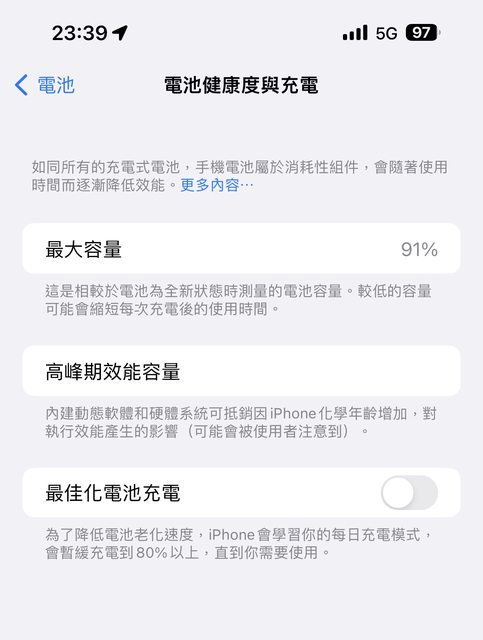 電池健康度 91%