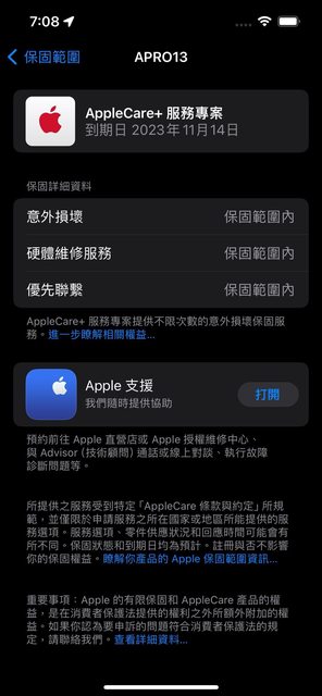 [保固] AppleCare+ 到 2023.11.14