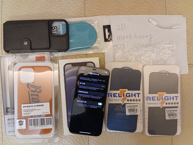 [盒裝配件] 原廠盒裝(無充電線)、全新防窺保護貼2張、全新透明保護貼1張,二手極新