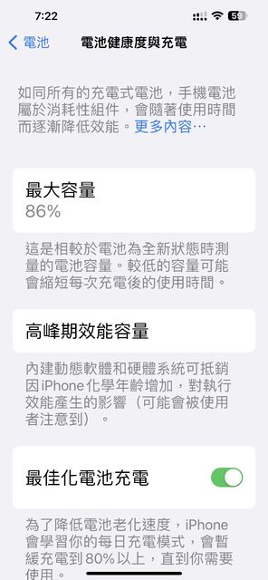電池健康度86%,有貼螢幕、鏡頭保護貼,外觀良好,不過充電孔周圍有些微刮痕