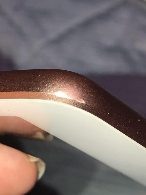 右下角有因爲之前裝硬殼拔除不慎造成的些微凹陷,目前附贈的軟殼會包住這部分,不影響使用