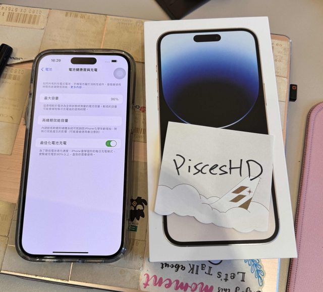 電池健康度96%,右下角有小碰傷,舊保護殼翻起來造成。