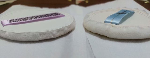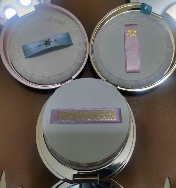每年厚粉撲的帶子都有配合粉餅盒的元素,