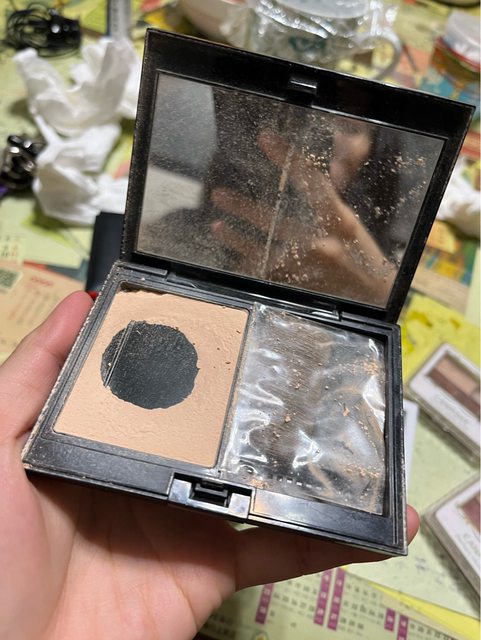今年新購入的,可以看的出來鮭魚粉已經開始凹了。目前真的是我遮黑眼圈的第一步驟,