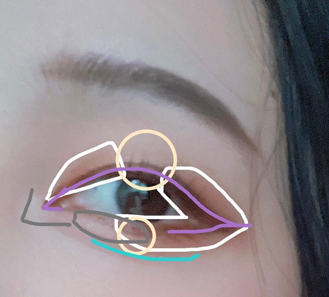 深紫色的地方,重點是眼尾一定要浮誇的加長+勾一下