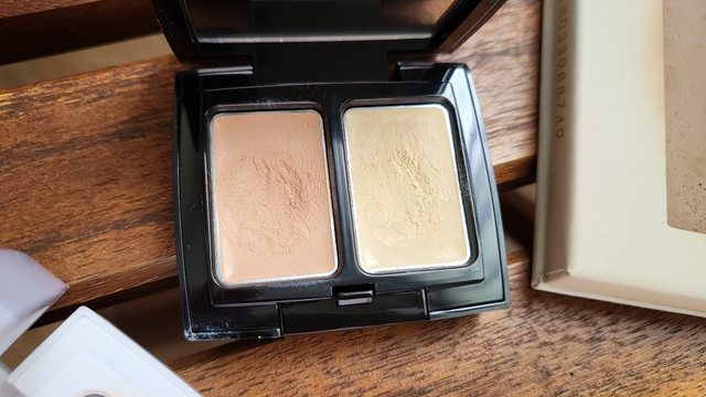 這款遮瑕膏真的很遮,雙色,一個是橘一個是黃色,顏色都很淺,我直接用裡面的橘色遮