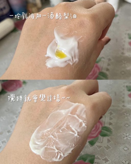 皮膚比較乾的時候,滴一滴酪梨油混在一起,很神奇的地方是過敏的臉會舒緩很多,而且