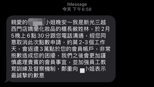 → altus925: 這個簡訊內容完全在規避法律責任 49.217.4.239 02/06 22:56