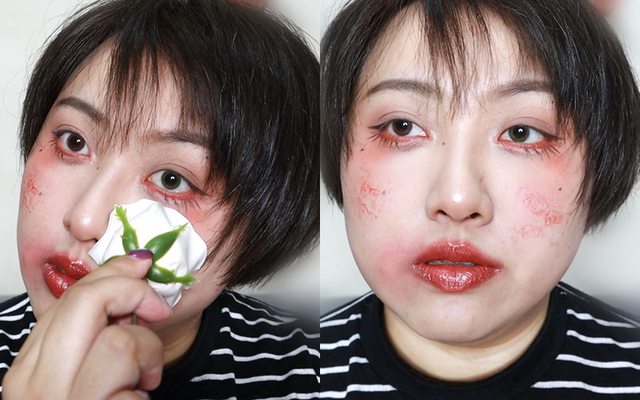 是帶點詭異氛圍的甜喪玫瑰妝