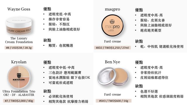 今天介紹的這幾款膏狀底妝同台較勁難免各有短長