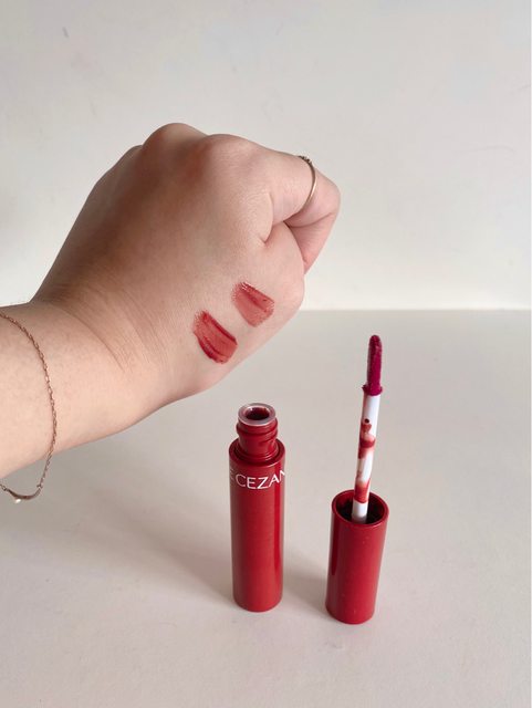 3.【CEZANNE 塞尚 水潤光透染唇釉 #07 苦紅】