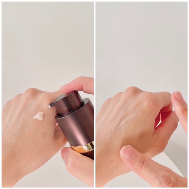 妝前乳是紮實的乳液狀,推開來質地輕薄,上臉沒什麼存在感