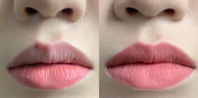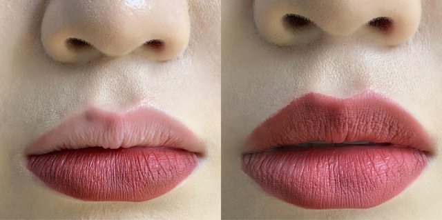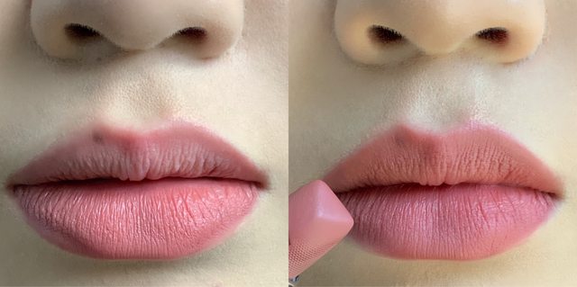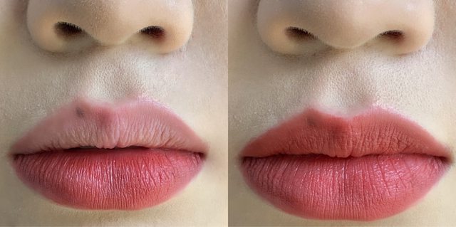 左邊的照片下唇塗了上唇沒塗,對我而言其實一模一樣,毫無存在感。就…不是很推薦