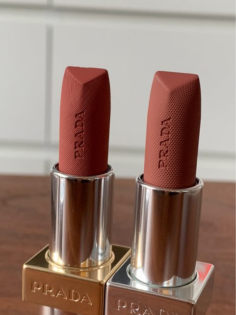!膏體的紋路是Prada的經典皮紋以及它們尼龍材質的壓紋!而口紅頂端則是用經典的三