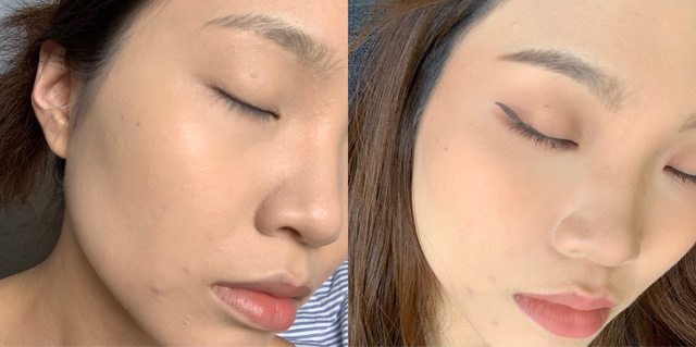 完妝後在正常距離下其實看不出什麼太大的瑕疵,而且因為粉感不重,給人一種膚況本身