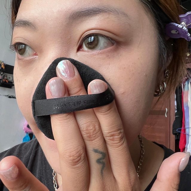 要是想要遮瑕一點的話可以用一樣的手法在面中推勻後拍開