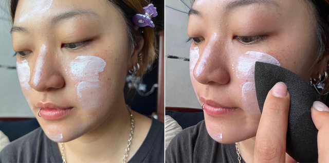 不過推勻的過程一定要比第一次再更小力一點避免把第一次的粉底液推開