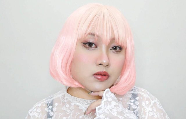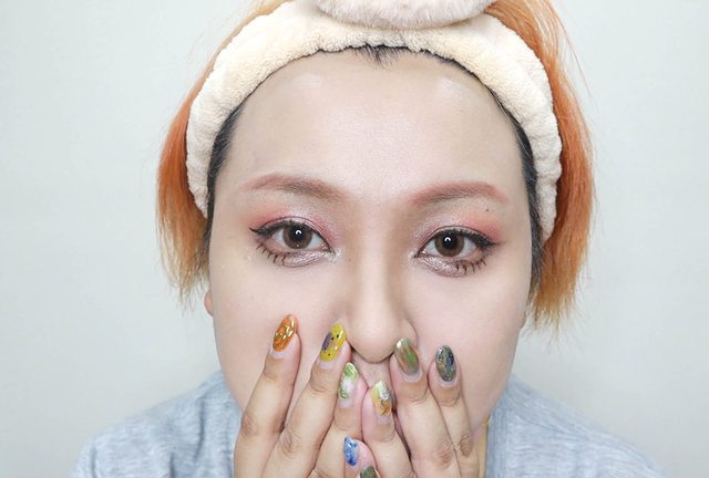 然後為了配合粉紅色頭髮 所以用眼影的粉紅色畫眉毛