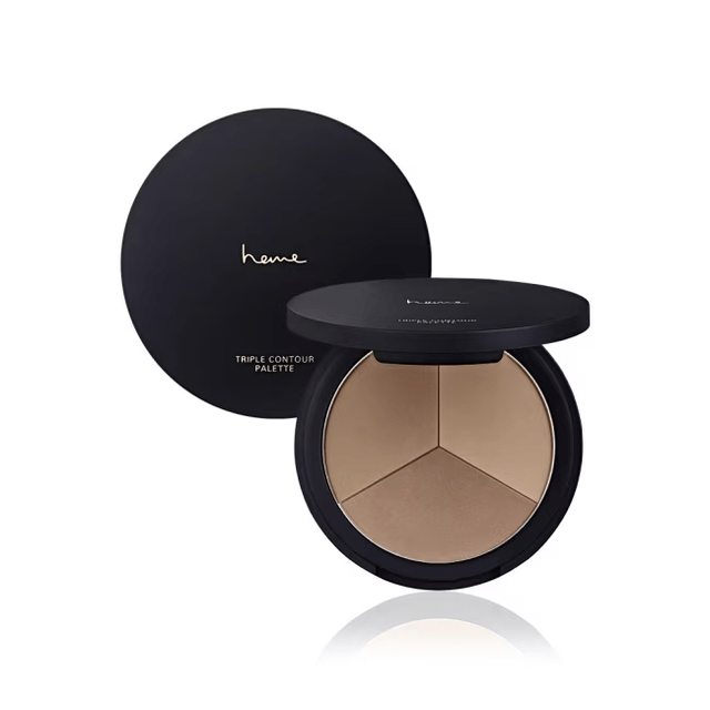 另一個是開架彩妝heme的三色修容餅,色號是00 Fair Contour,我會用第二淺的顏色來