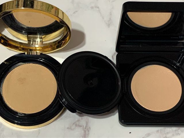 這款氣墊是篩網狀的,拿同為篩網狀的YSL粉氣墊出來比較看看,個人覺得篩網細緻度上