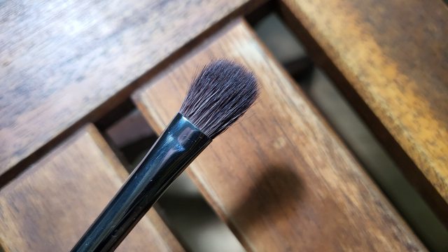 刷毛部會次、很柔軟,好取粉,也很好暈開眼影,毛量稍微少,堪用啦,不會推薦,有比