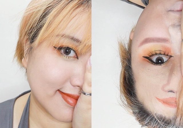 這次挑戰的是Nikkie這個半臉顛倒妝