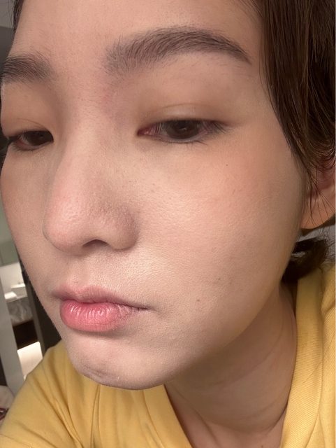 有點難上妝,護手霜打底還是很不夠,尤其是鼻翼那邊,很浮粉。除了鼻子以外的其他區