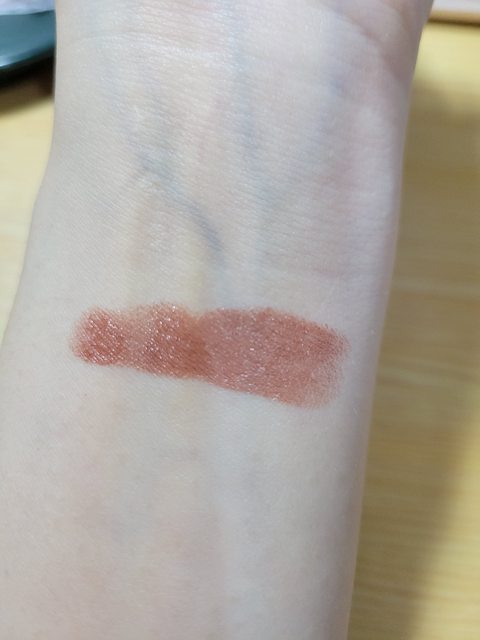 102唇膏本體是很深的棕色,當下買到時覺得不太妙,上唇後意外的是很喜歡的紅棕色,