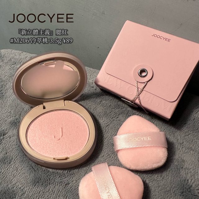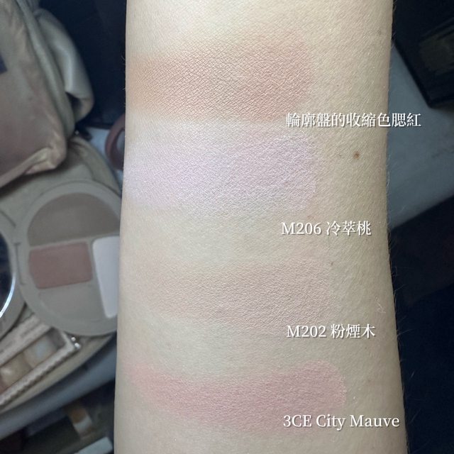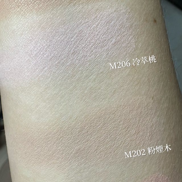 這系列膨脹系腮紅還主推#M205 牛奶粉,適合暖系膚色。跟冷萃桃比起來,冷萃桃帶更多