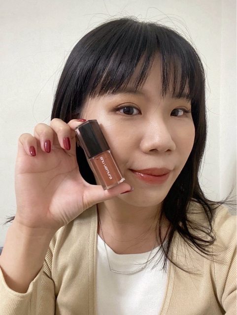 我自己會在素顏跟淡妝時薄擦,用手指暈開&稍微抿一下