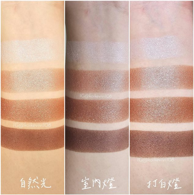 4.右下眼線色:是這盤最低調的顏色,沒有那麼明顯的珠光,但作為眼線跟收斂眼妝的效果