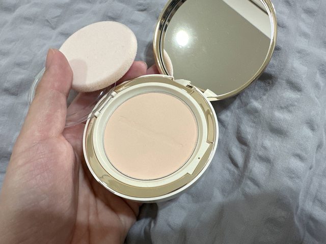 定妝搭配后的光澤蜜粉餅,最近才買的,外盒超美
