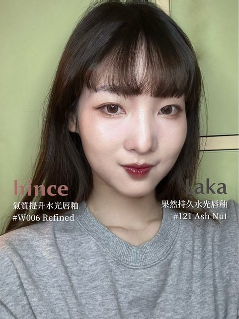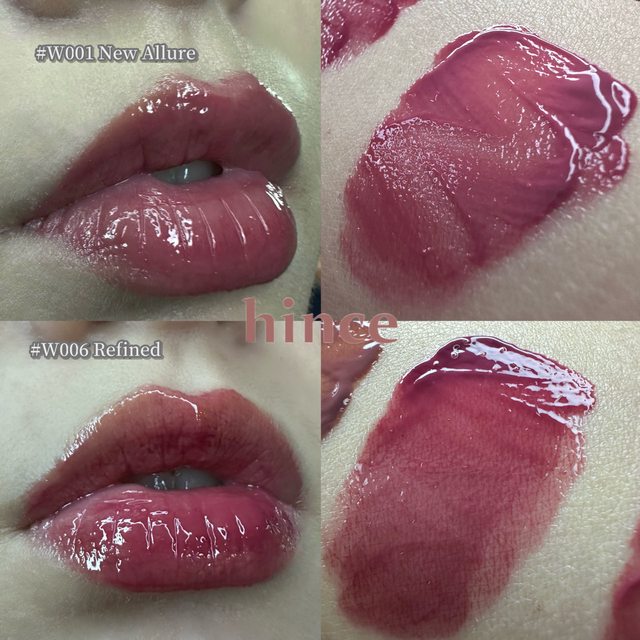 圖上看起來差不多,但其實上唇後兩個品牌的質地看起來Hince更接近玻璃唇的感覺,表
