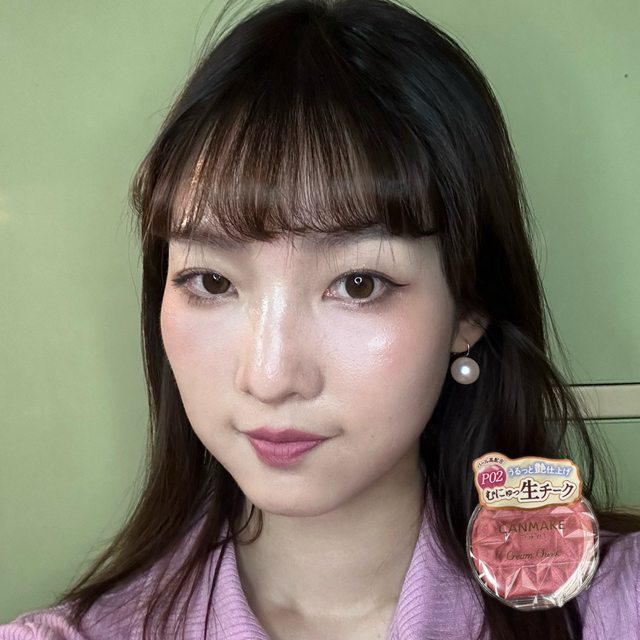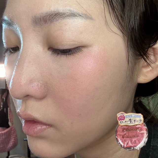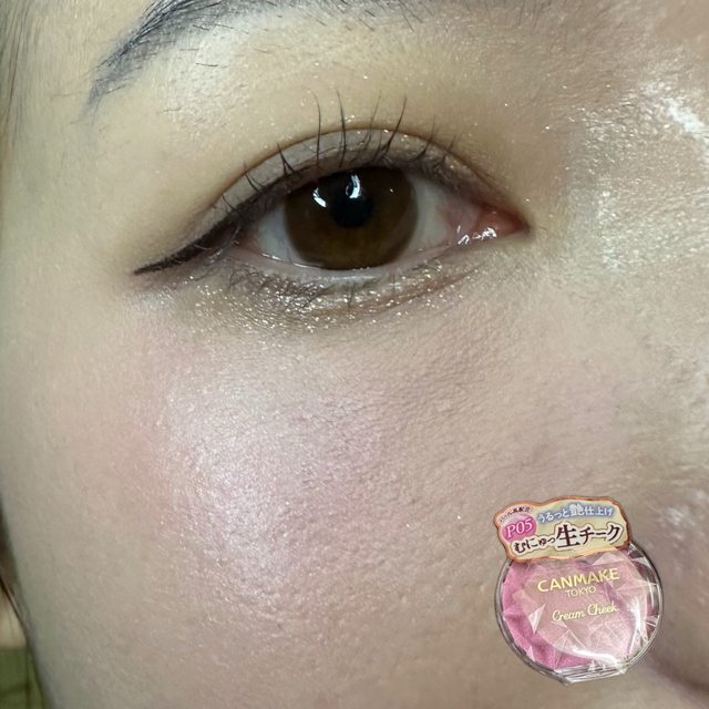 而且它會有淡淡的珠光不同角度閃閃的,通常用了這個我就不會再在臉頰上上打亮,如果