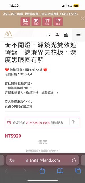 剛好瞥到有人在美妝團購揪團,趕快上官網看,3/25 10:00開賣