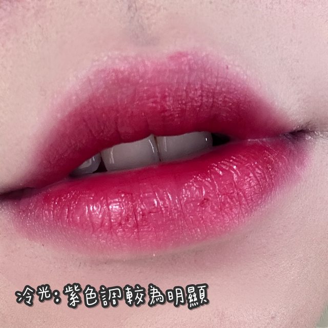 但當走到冷光底下時,莓果、葡萄酒的紫色調就會比較明顯