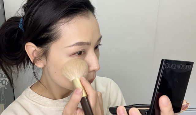 一開始我是用刷子上,但我的刷子太軟,我覺得是國王的蜜粉。