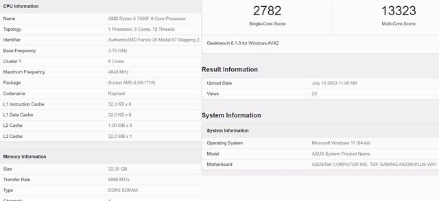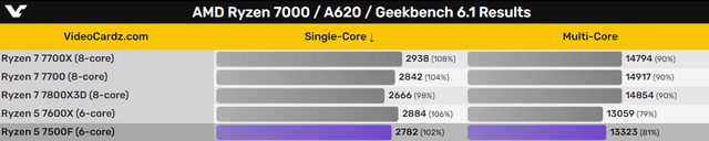 GeekBench 6.1測試資料庫中已經出現了銳龍5 7500F