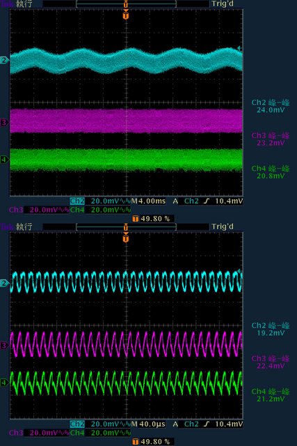 25.2mV/25.6mV/23.2mV,高頻漣波分別為20mV/25.6mV/24mV