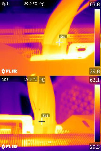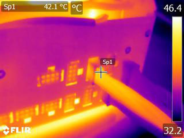 ▼執行FURMARK 30分鐘後,電源端插頭的紅外線熱影像圖(附註:安裝位置環境溫度會影