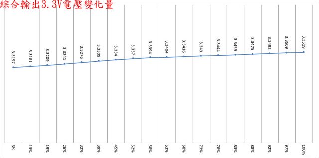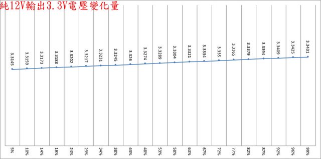○偏載測試,12V維持空載,測試3.3V滿載、5V滿載、3.3V/5V滿載的3.3V/5V/12V電壓變