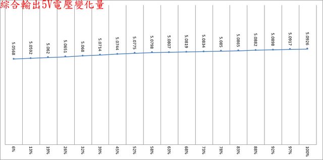 時12V漣波波形改變;輸出12V/6A以上12V漣波波形固定,只改變振幅。於綜合全負載輸出