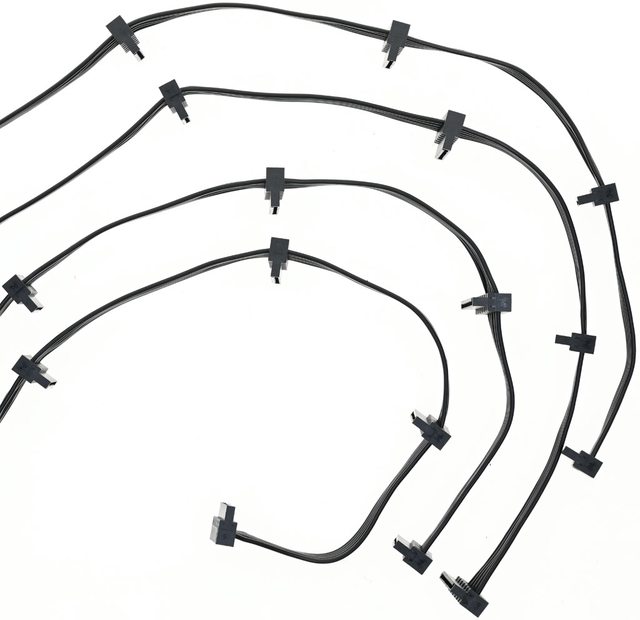 ▼4條SATA接頭黑色帶狀模組化線路,提供16個直角SATA接頭,至第一個接頭線路長度46