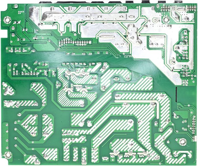 ○電路板背面沒有任何元件,焊點整體做工良好,大電流線路有敷錫處理,12V迴路部分
