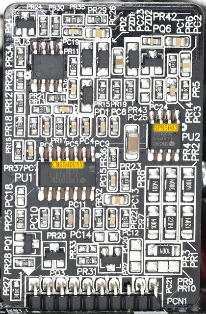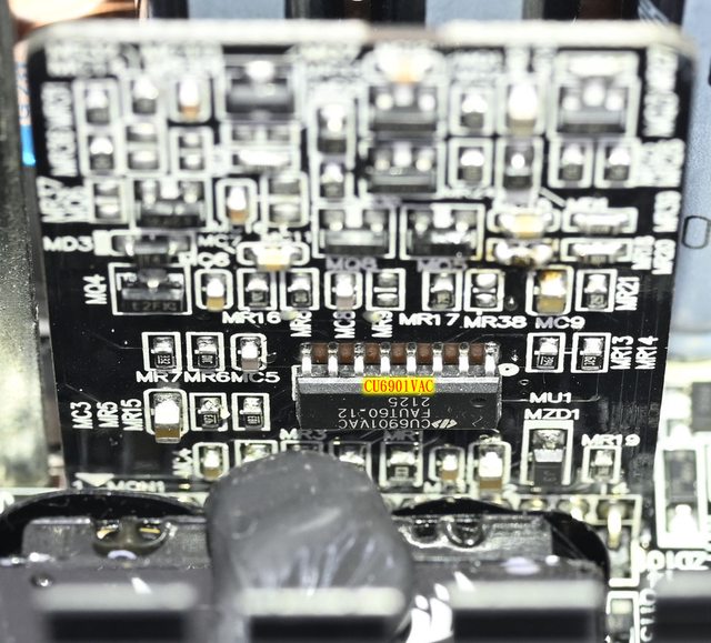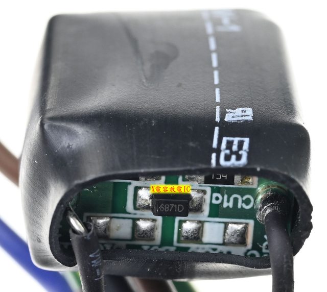 ○交流輸入插座焊點有2個Y電容、1個X電容,X電容底部小電路板有X電容放電IC,焊點沒