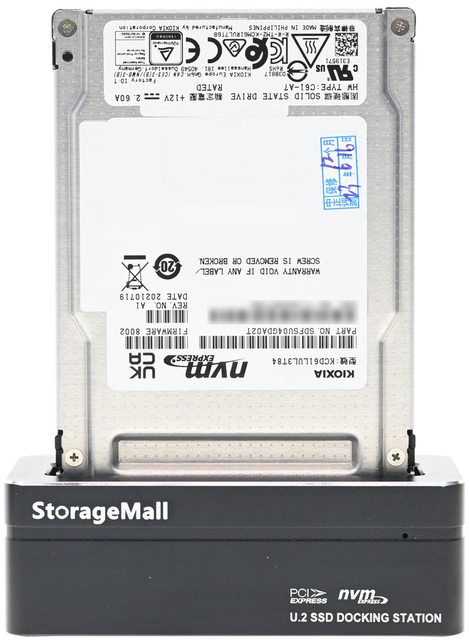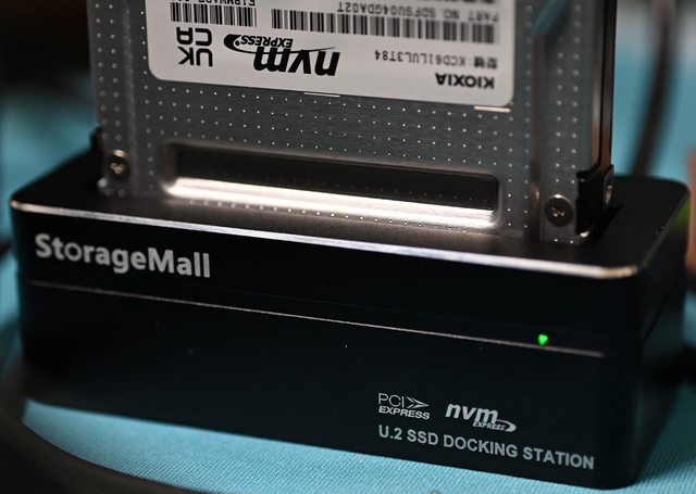 StorageMall U.2 NVMe SSD外接USB擴充底座裝上KIOXIA CD6-R U.3 Gen4 NVMe 3.84T