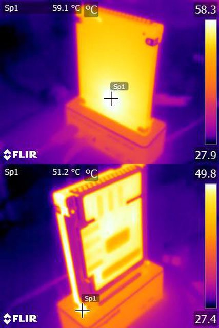 ▼未有流動氣流下,背面(上圖)/正面(下圖)紅外線熱影像圖