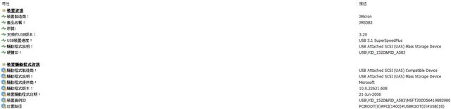 ▼HWiNFO硬體資訊內容,橋接晶片為JMicron JMS583
